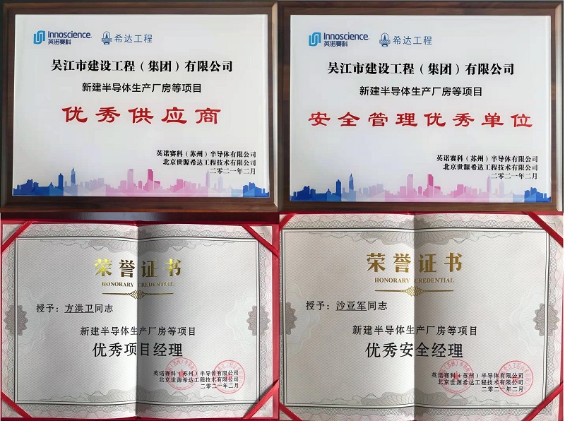 歷經(jīng)兩年半精心施工,方洪衛(wèi)經(jīng)理和他的英諾賽科工程建設(shè)團(tuán)隊(duì)交出了完美的答卷,在建設(shè)單位召集的工程總結(jié)表彰會(huì)上,一舉獲得了“優(yōu)秀供應(yīng)商”“安全管理優(yōu)秀單位”、“優(yōu)秀項(xiàng)目經(jīng)理”、“優(yōu)秀安全經(jīng)理”等獎(jiǎng)項(xiàng)。方經(jīng)理在總結(jié)會(huì)上代表吳江建工發(fā)言,向建設(shè)單位和EPC總包表達(dá)了深深的感謝和祝福,方經(jīng)理表示,承建英諾新建半導(dǎo)體廠房工程,是對(duì)自身施工管理水平的極大考驗(yàn),工程全過(guò)程高標(biāo)準(zhǔn)嚴(yán)要求,極大地提升了團(tuán)隊(duì)技術(shù)和管理水平,期待與建設(shè)單位保持良好合作,共同開(kāi)創(chuàng)芯片事業(yè)新篇章!