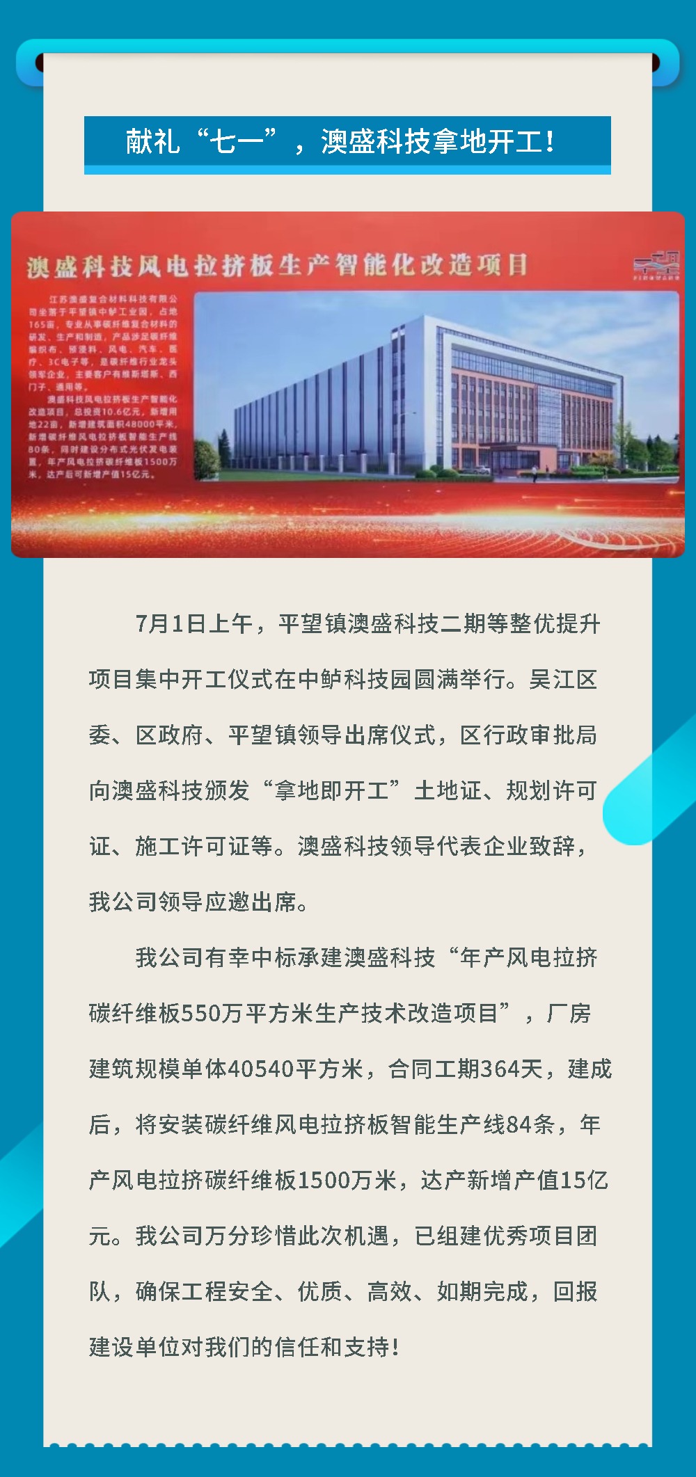 獻禮“七一”,澳盛科技拿地開工!