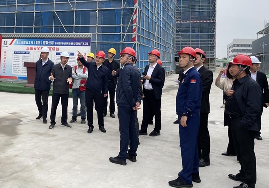 4月28日,區(qū)委書記李銘帶隊(duì)前來我司施工總承包項(xiàng)目蘇州同淳新材新建廠房工程,開展安全生產(chǎn)蹲點(diǎn)調(diào)研暨“五一”節(jié)前安全生產(chǎn)督查督導(dǎo),區(qū)領(lǐng)導(dǎo)李文斌、錢宇參加活動,吳江建工總經(jīng)理王海榮陪同調(diào)研。